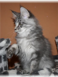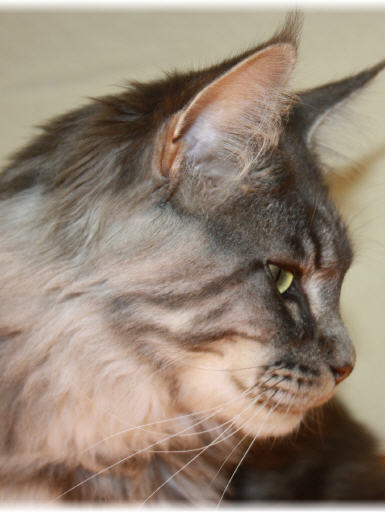 Viel Fell, ein sehr interessanter Typ, ein tolles Profil und wunderschön gesetzte große Ohren zeichnen ihn aus. Dazu kommt ein sehr hoher Silberanteil und ein XXL-Schwanz und Mega - Tipps, dieser Kater läßt kaum Wünsche offen.