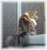 Amidala stammt aus unserer eigenen Zucht, ihre Eltern sind Best of und Sunshine, sie ist ein traumhaft schönes Mädchen, mit einer so tollen Zeichnung, das so manche Bengal-Katze vor Neid erblassen würde. Hinzu kommen eine perfekte Nasenlinie, ein sehr gutes Kinn und gut gesetzte Ohren mit dicken Pinseln obenauf. Sie ist ein kräftiges, langgestrecktes, sehr typvolles , großes Mädchen, mit einem lieben und sehr kuscheligen Wesen.