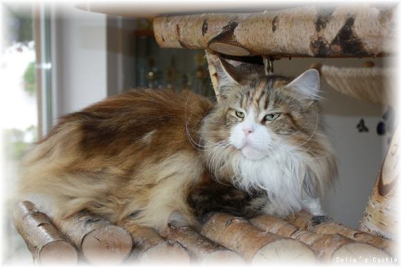 Nein, geplant war Jolina nicht, wir haben ja schon Venga-Töchter behalten. Aber sie war noch keine Minute alt, da wußte ich, sie wird bei uns bleiben :-) Jolina, die Tochter unserer Sunshine, ist eine sanfte, etwas zurückhaltende Katze, die aber das Schmusen und Kuscheln über alles liebt. Mit Jolina ist ein Traum für mich wahr geworden!!! Abgesehen von ihrer tollen Farbverteilung, hat sie ein super Kinn und eine perfekte Nasenlinie. Sie hat eine sehr gute Ohrstellungmit schönen Tipps. Zudem ist Jolina auch noch sehr groß und hat extrem viel viel Fell, das zu meiner großenh Freude wenig knotet.