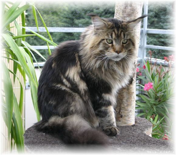 Venga ist ein seeehr kräftiger, großer Kater, der mit 1,5 Jahren 9 kg. wiegt. Er hat eine dicke Knuddelschnauze mit einem Megakinn und einer sehr guten Nasenlinie. Dazu kommen Wahnsinnsohren mit den tollsten Pinseln, die ich je gesehen habe, oben drauf. Obwohl er aus einer reinen Showlinie kommt, hat er mit den meisten unserer Katzen (bis auf 2 ) ein sehr guten Inzuchtwert, das Inbreeding liegt nicht über 15 % vor dem Komma. Das ist uns sehr sehr wichtig!